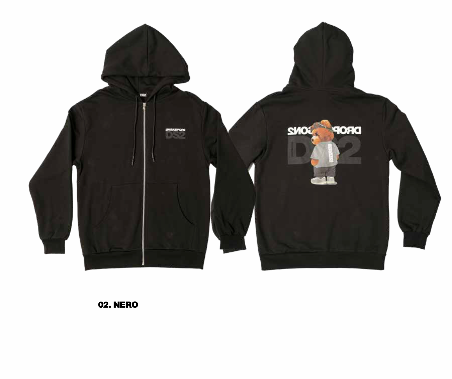 DS2 Felpa zip con orsetto 100% cotone con logo Drop Season 2 è possibile abbinare Pantalone felpa e t-shirt della stessa collezione