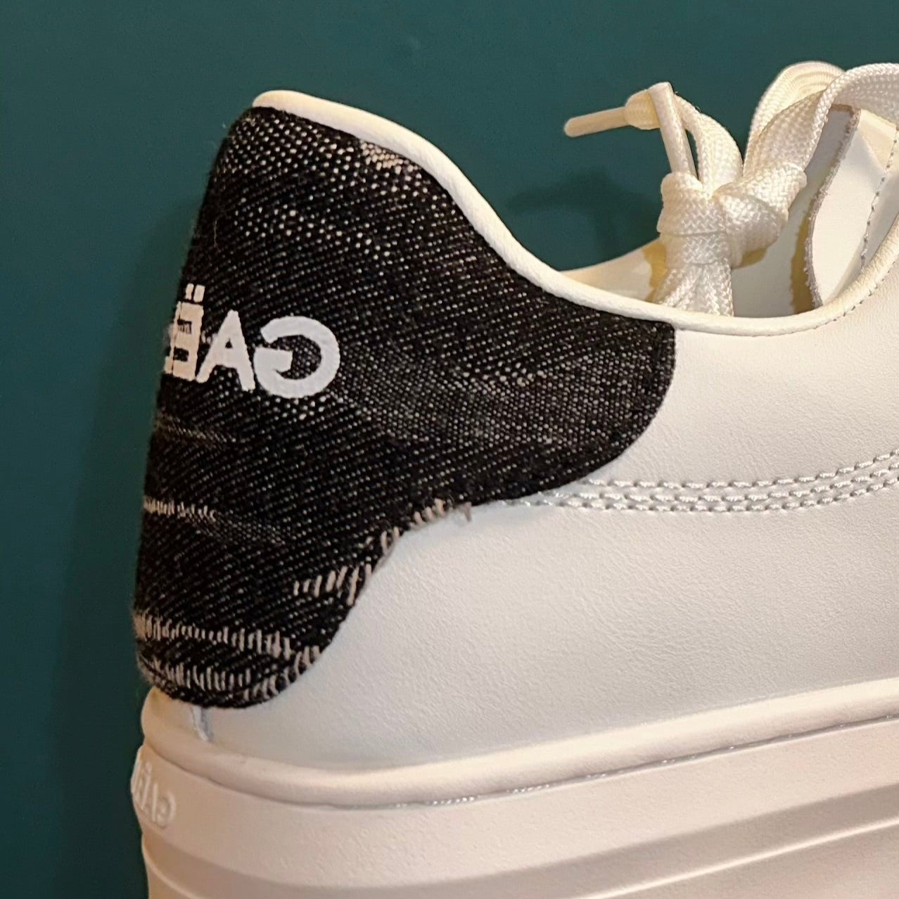 GAELLE PARIS SNEACKERS addict in action pelle con rubber patch in denim blu