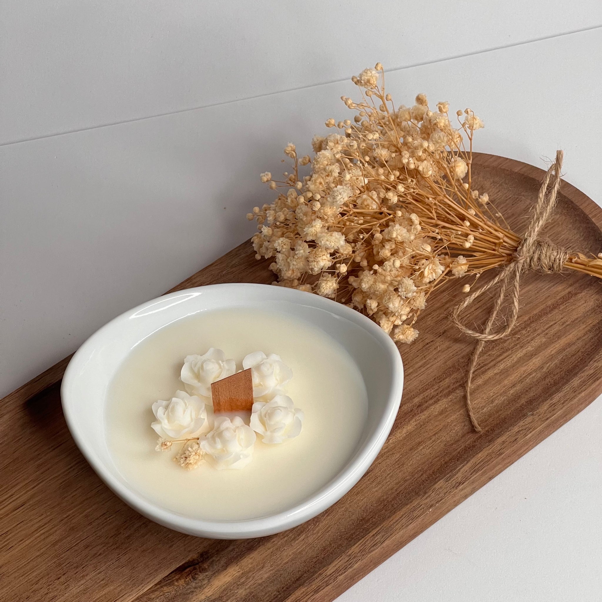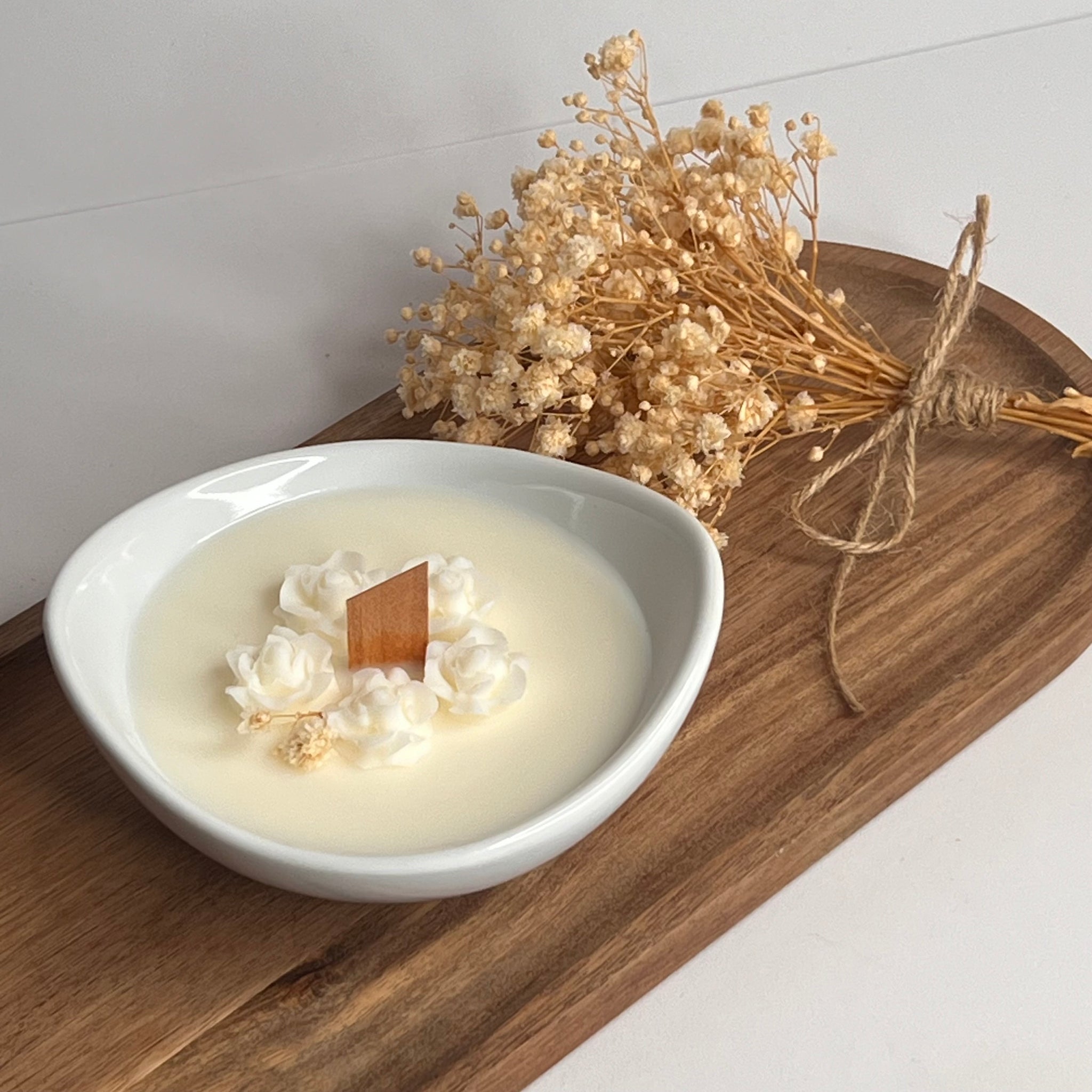 Un vassoio di fine ceramica ospita al suo interno delle minuscole roselline in cera impreziosite da delicati fiori secchi. Creaun'atmosfera di pura raffinatezza con il nostro esclusivo vassoio, realizzato a mano e decorato con una base di cera naturale. Ogni vaso è un'opera d'arte unica, che emanana una bellezza senza tempo. I dettagli floreali si intrecciano armoniosamente con piccoli boccioli di rosa, creando un raffinato equilibrio tra natura e romanticismo.