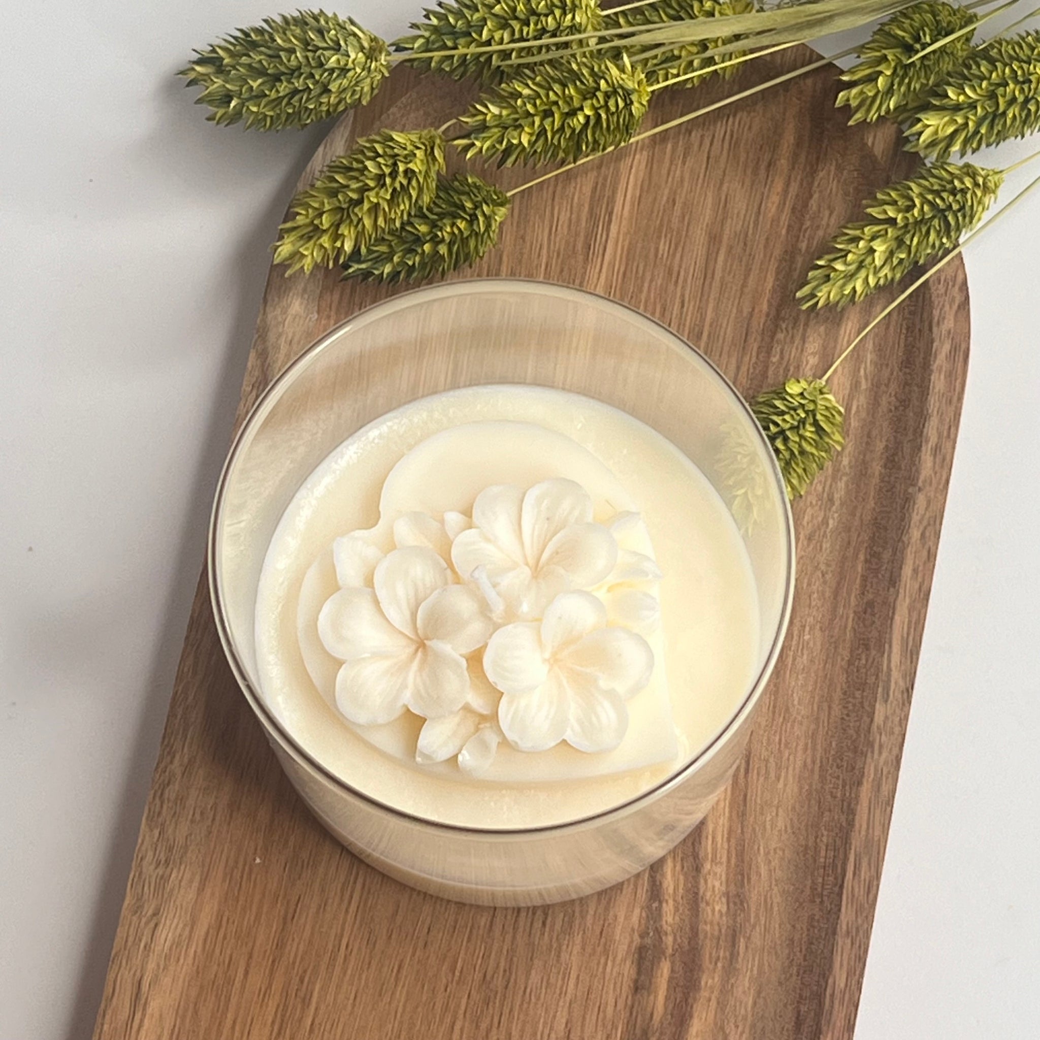 Su un piatto di cera viene adagiata una rosa circondata da piccole sorelline. Crea un'atmosfera di pura raffinatezza con il nostro esclusivo vassoio, realizzato a mano e decorato con una base di cera naturale. Ogni vassoio è un'opera d'arte unica, che emanana una bellezza senza tempo. I dettagli floreali si intrecciano armoniosamente con piccoli boccioli di rosa, creando un raffinato equilibrio tra natura e romanticismo.
