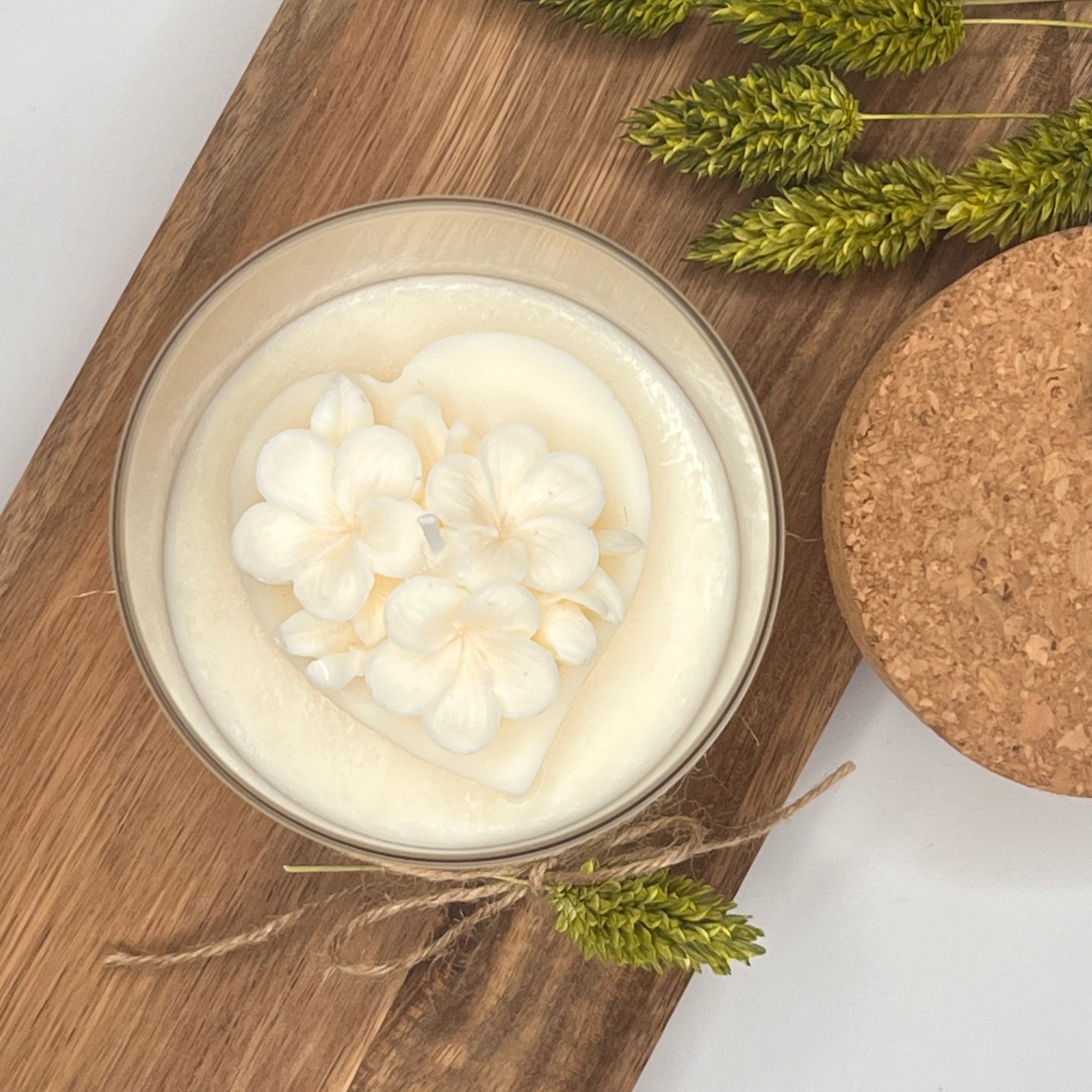 Un vaso al cui interno un letto di cera naturale ospita un cuore con incastonati dei minuscoli fiorellini è destinato a essere regalato alla vostra persona amata.